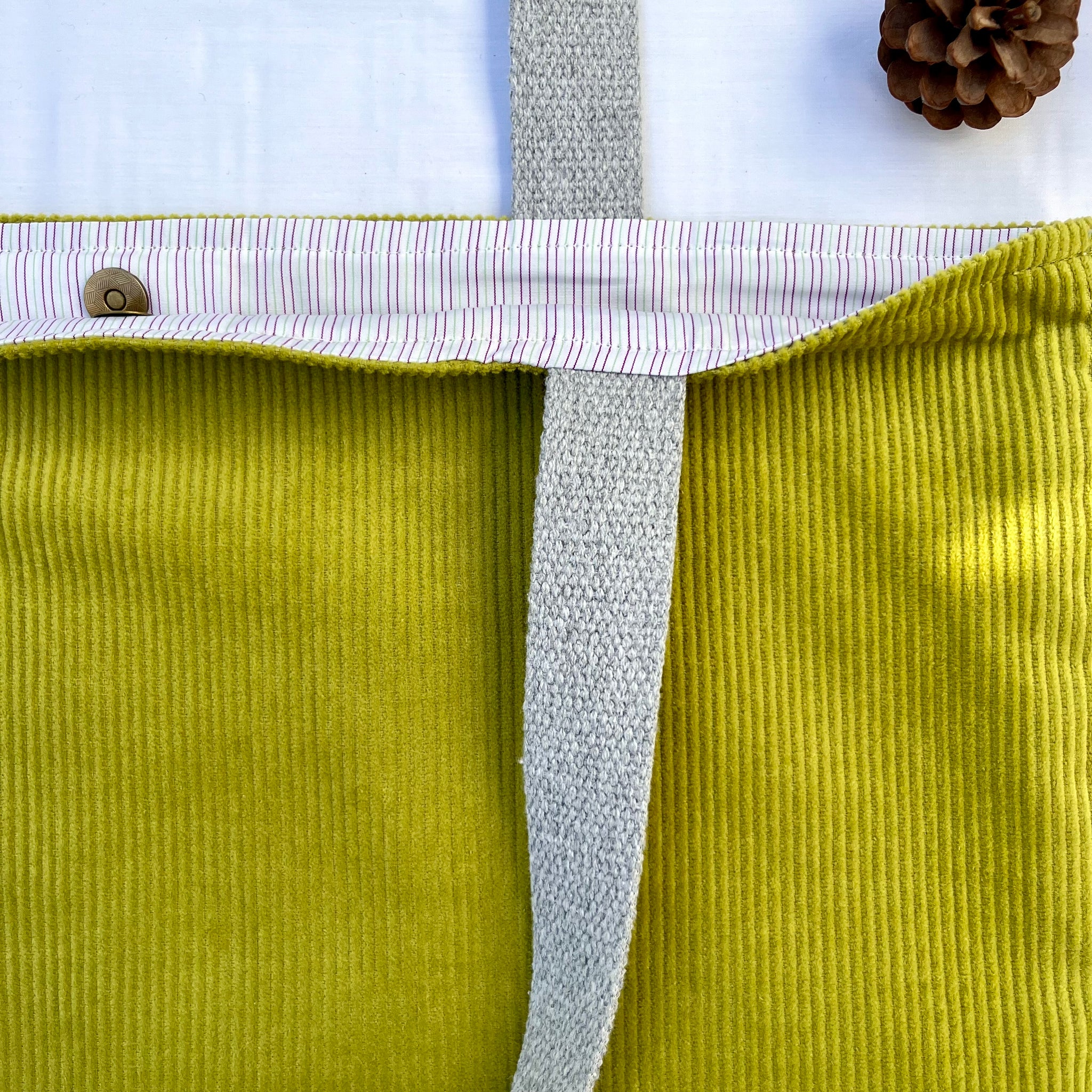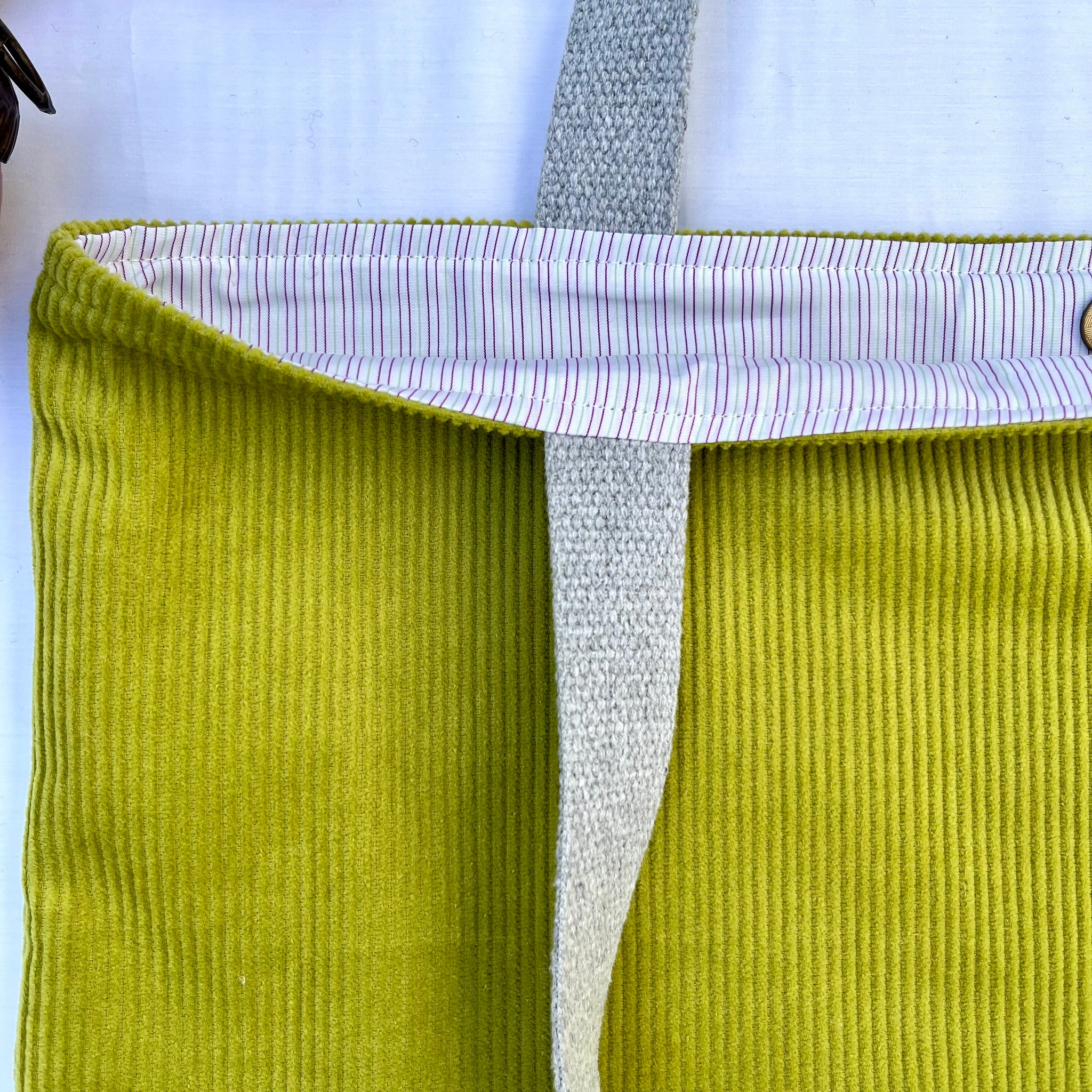 The bag is fully lined with a purple and lime green striped cotton poplin fabric from a famous French designer house. Purple and lime green striped shirting fabric. 100% cotton. Made in France.